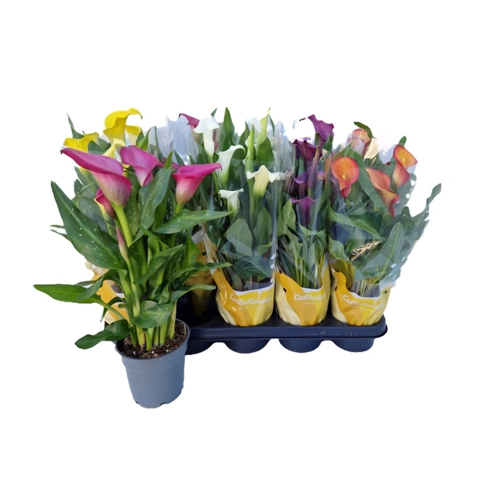 Mantenimiento: Las calas de color (Zantedeschia sp.) son originarias de Sudáfrica. Florecen produciendo espatas de diversos colores vibrantes. Son plantas herbáceas perennes.