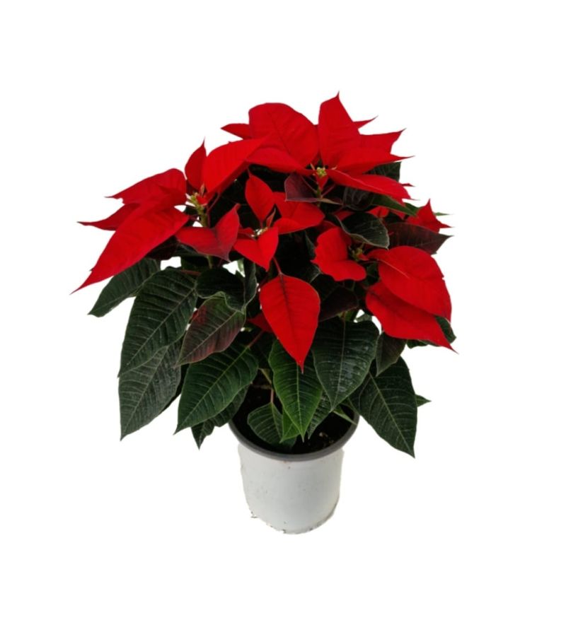 Mantenimiento: La poinsettia, originaria de México, es conocida por sus brácteas rojas. Se desarrolla mejor en climas cálidos con luz natural indirecta. Requiere riego moderado, permitiendo que la tierra se seque entre riegos.